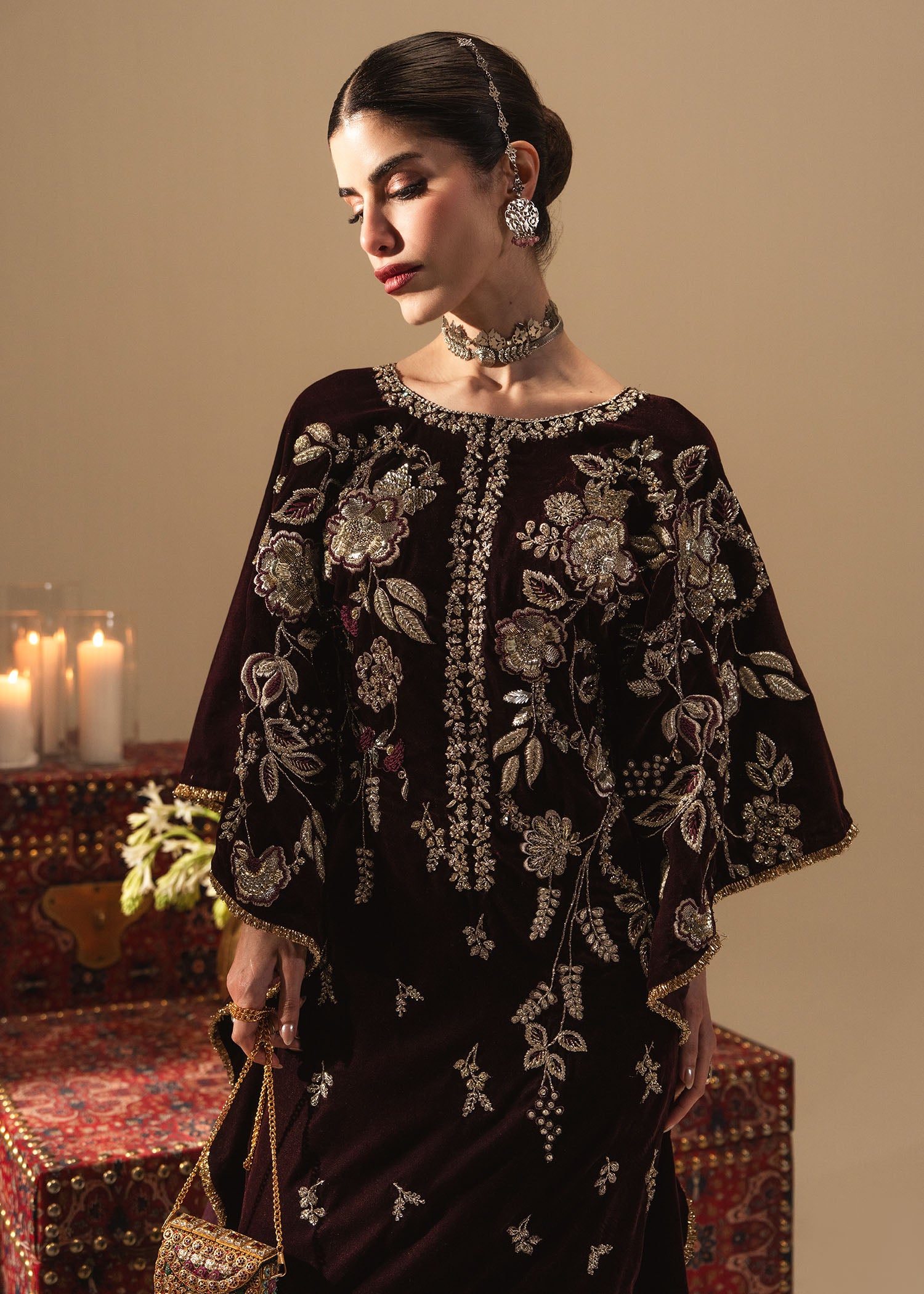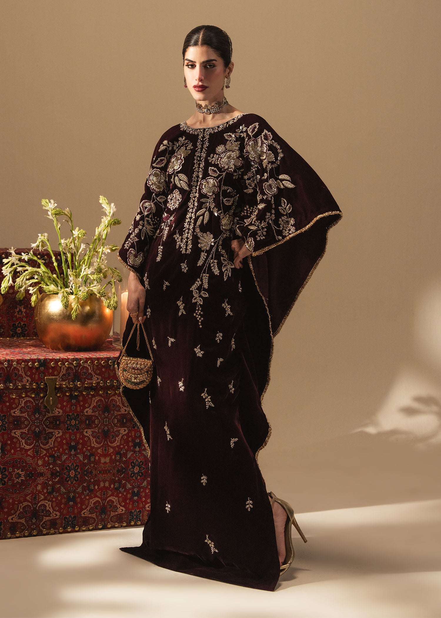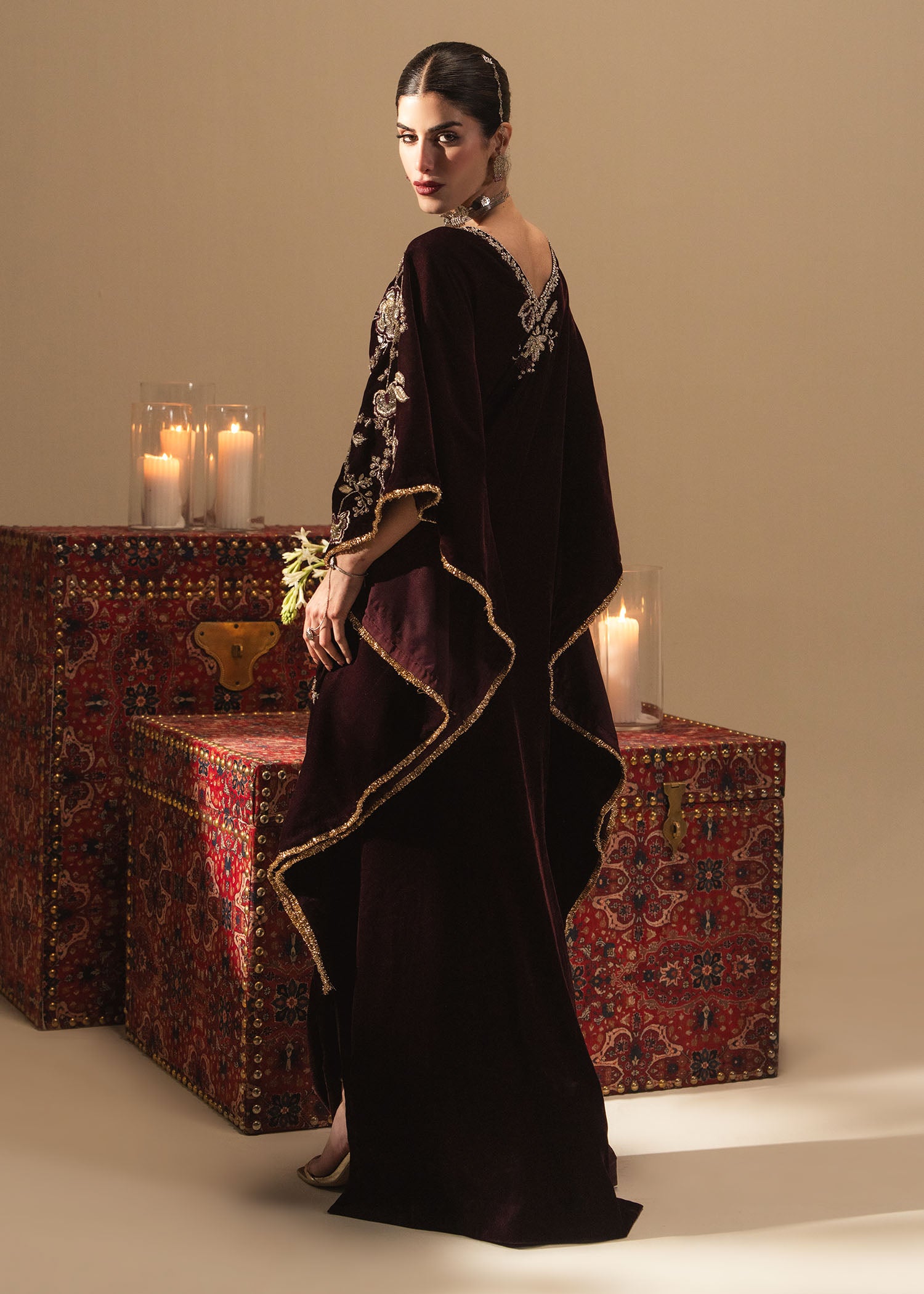 Hand worked velvet kaftan with batwing effect sleeve shape and a decorative Kiran finishing to offer a perfect blend of classic and contemporary.